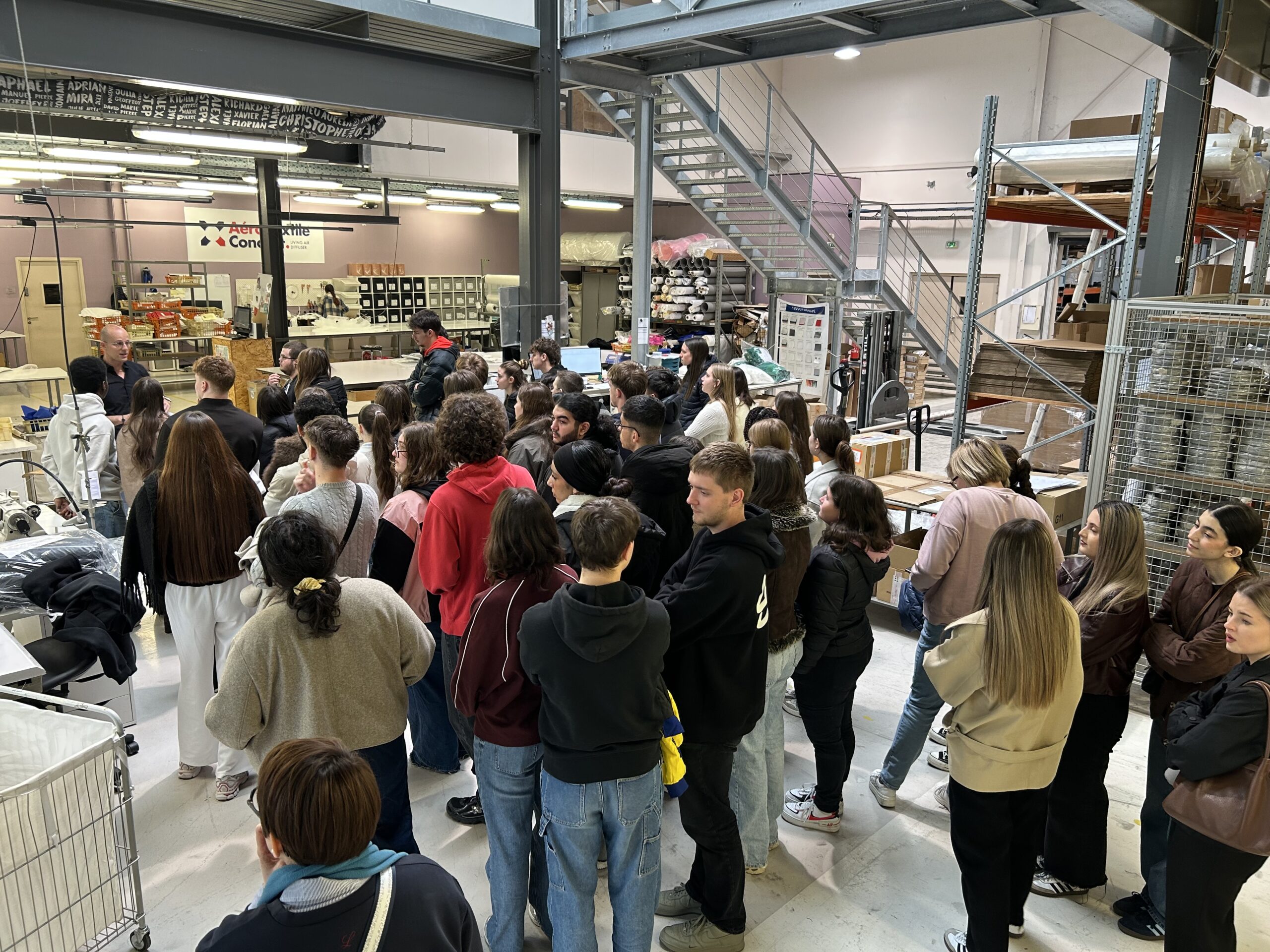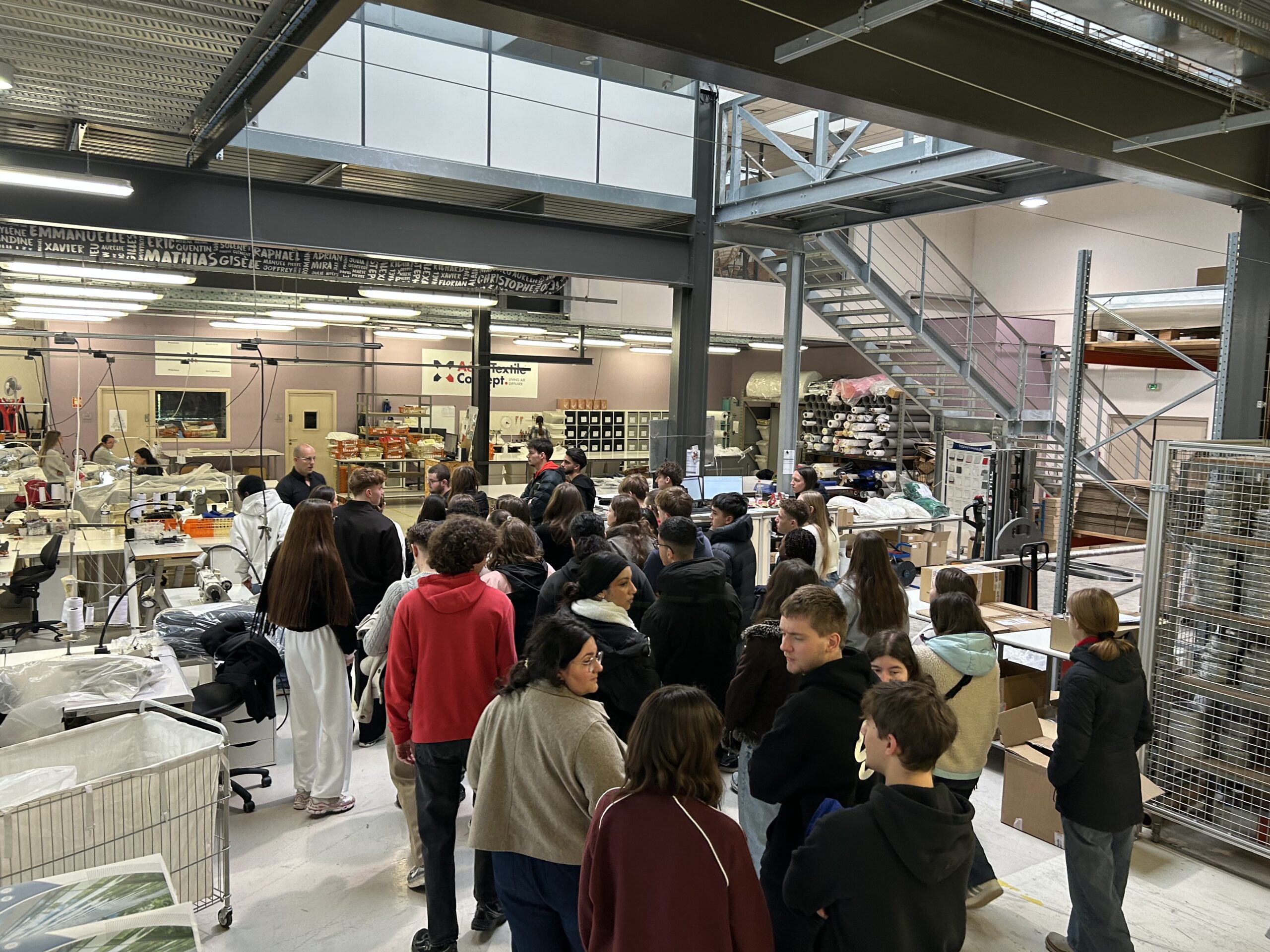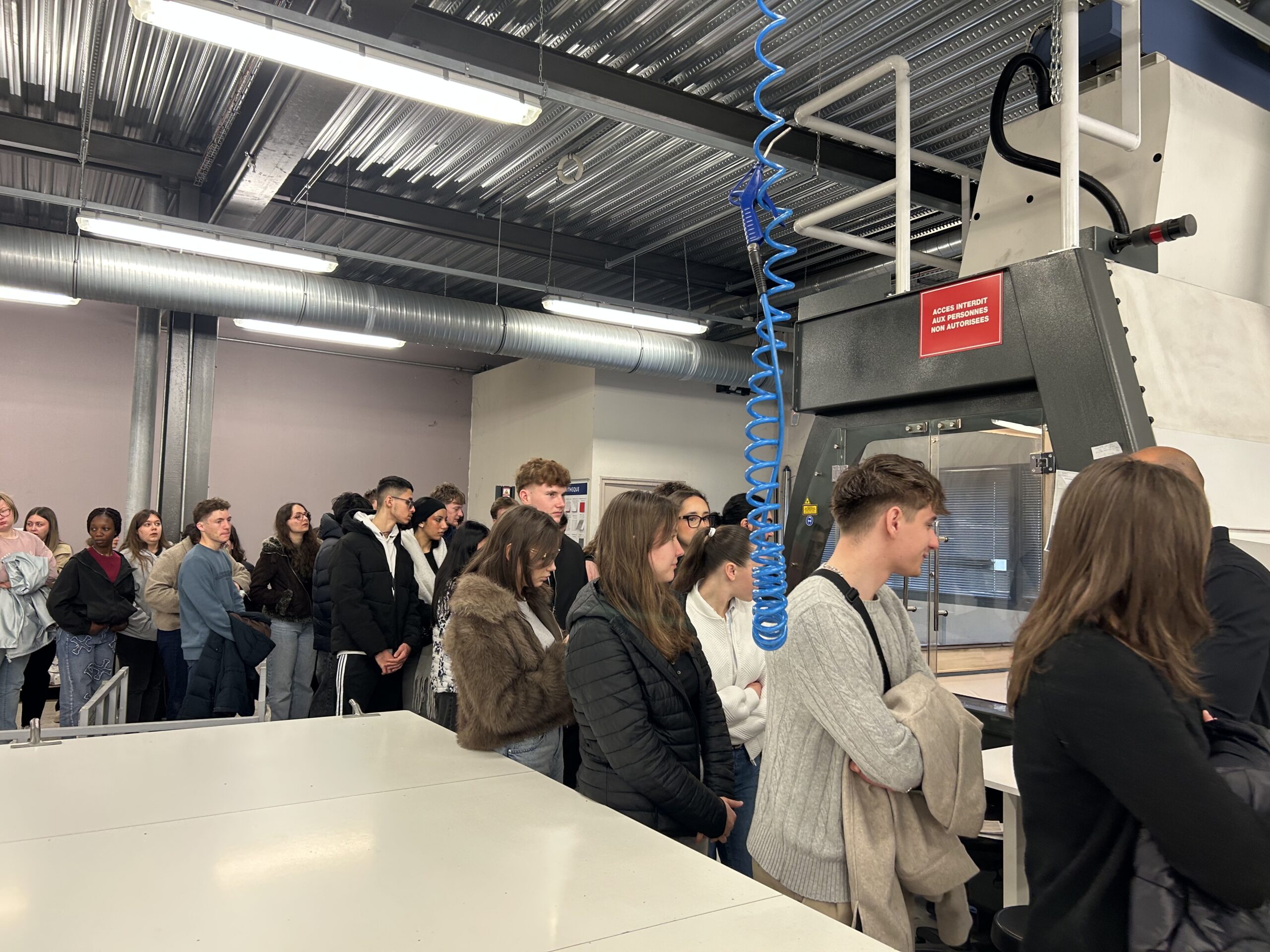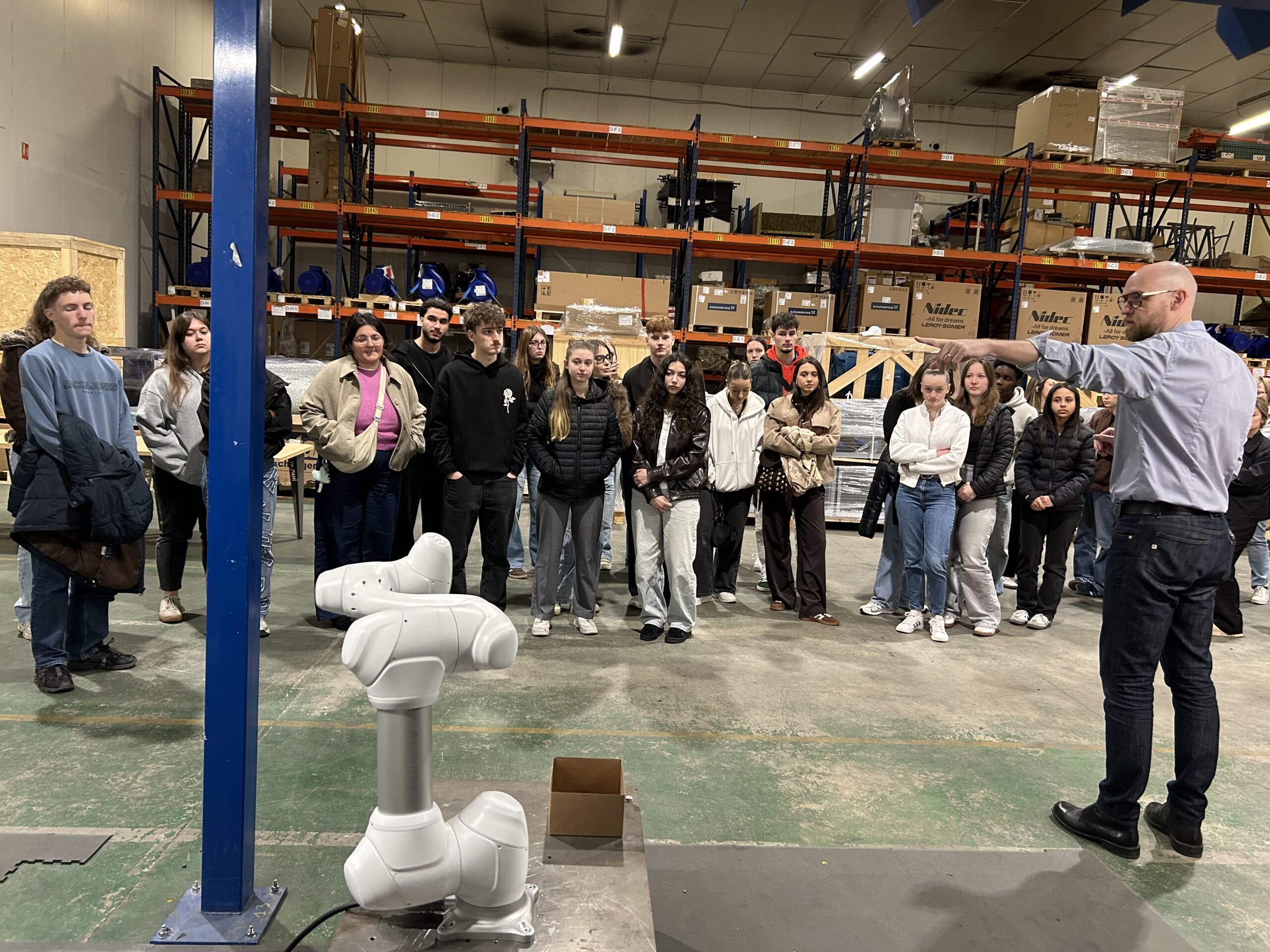 Nous nous sommes ensuite rendus dans les ateliers pour une visite des locaux des deux structures. Les étudiants ont ainsi pu observer le savoir-faire remarquable des personnels de l’entreprise ATC dans la réalisation et la couture des gaines en textile pour acheminer l’air. Nous avons également pu observer les réalisations de l’entreprise Energence dans le déploiement de solutions depuis la mise en place d’armoire électrique jusqu’à l’intégration de robot ou de cobot (robot collaboratif) pour l’industrie.